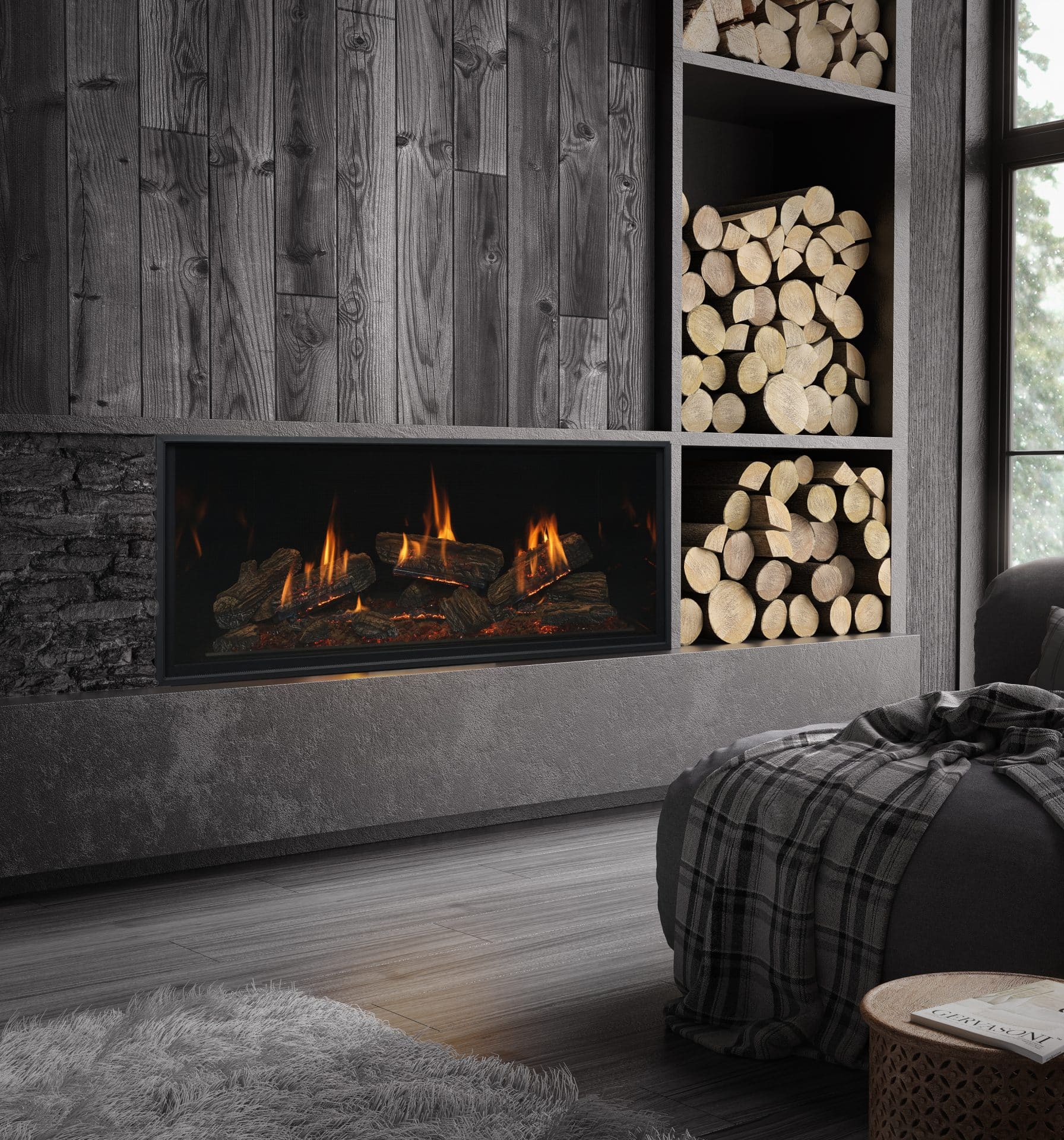 Each Direct Vent has a variety of options for the logs, liner (firebox walls), and screen front. Clients make these selections, creating a unit custom to their home and style!
